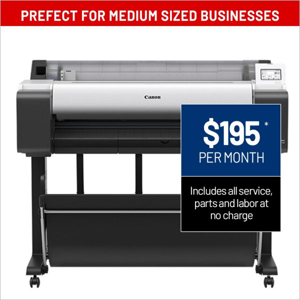 The 36-inch Canon imagePROGRAF TM-350 MFP T36 is an all-in-one Scan-To-Copy/File/Share solution, combining the TM-350 large-format printer, T36 scanner, and a built-in All-In-One computer powered by SmartWorks software for seamless operation and enhanced productivity.